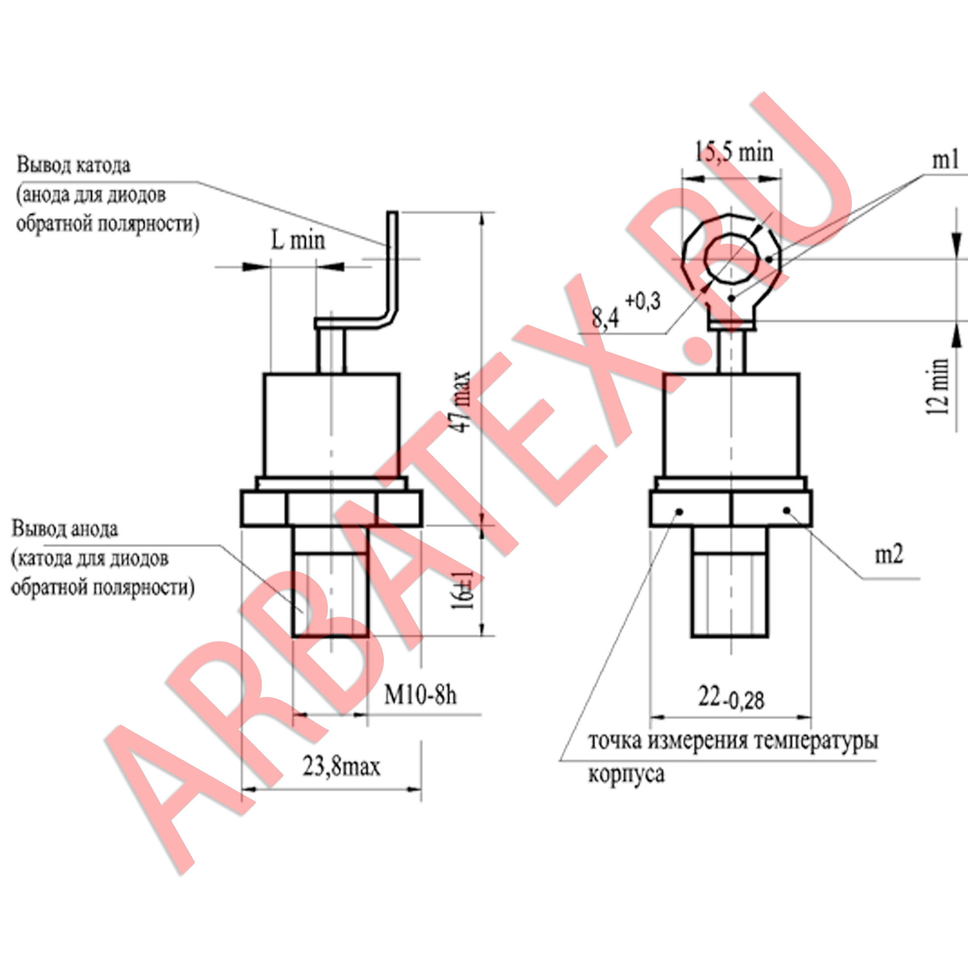 Масса диода не более 48 г.