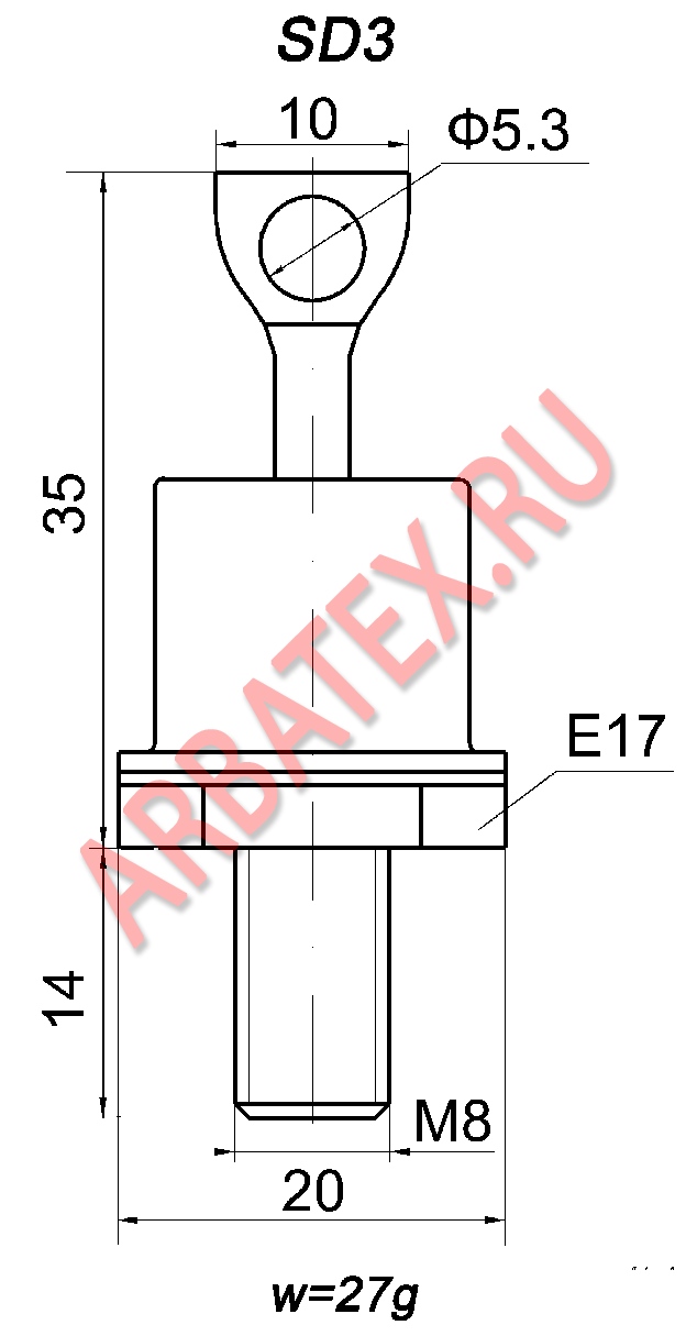 Масса диода не более 27 г.