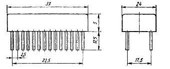 Корпус прямоугольный типа 255АМП.28-1, масса не более 10 г.