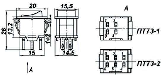 ПТ73-2-1 переключатель тумблерный миниатюрный клавишный или рычажный применяется для коммутации электрических цепей постоянного и переменного тока в радиоэлектронной аппаратуре. Климатическое исполнение УХЛ. Клавиши и рычаги тумблеров могут изготавливаться пяти цветов: белого, красного, зеленого, синего или черного.