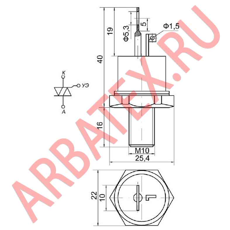 Масса тиристора не более 48 г.