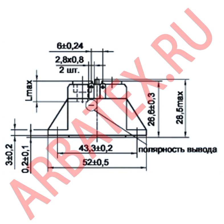 Обозначение типономинала и полярность выводов приводятся на корпусе.