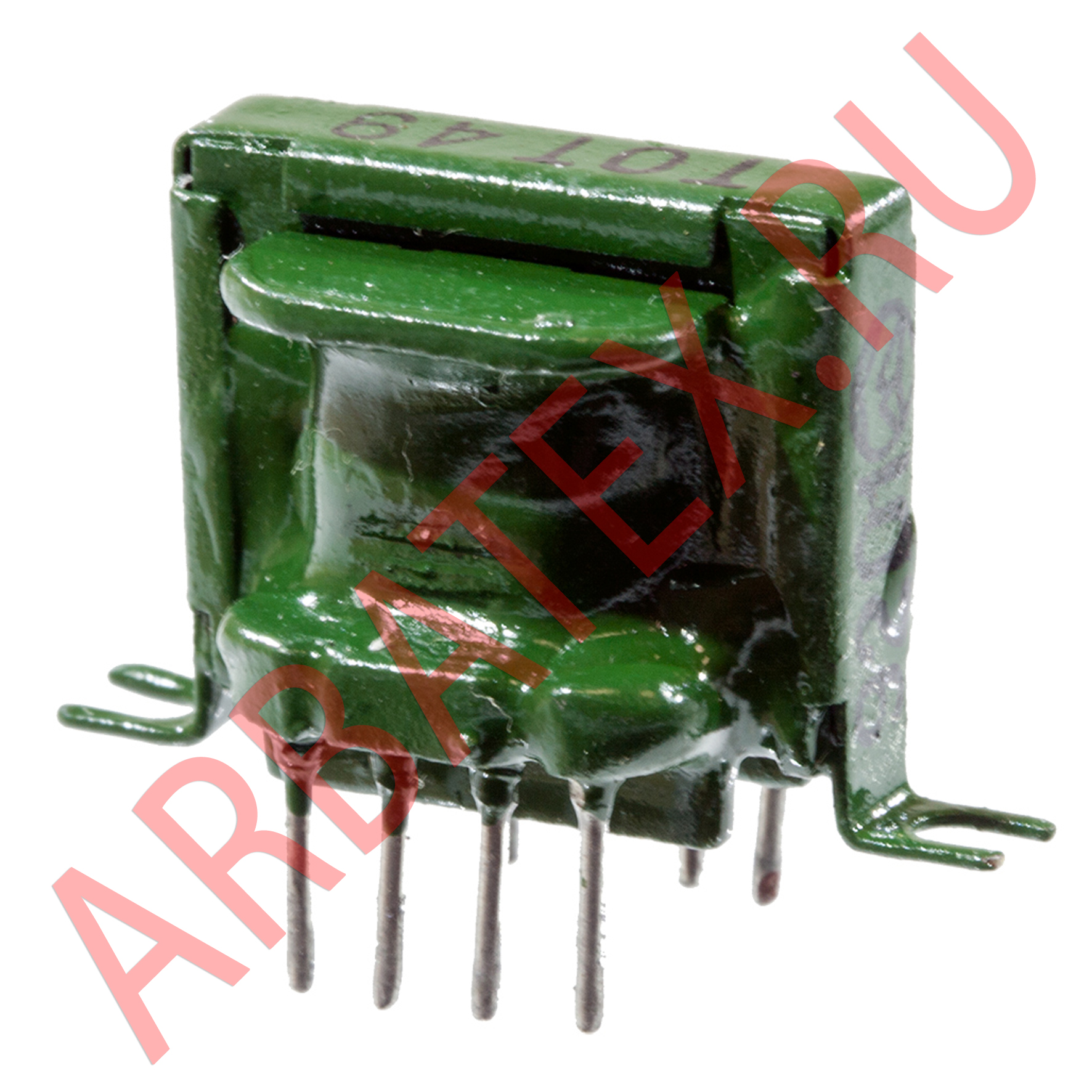 Расположение выводов трансформаторов подобно цоколевке электровакуумных приборов и реле. Имеется ключ и дополнительная маркировка первого вывода на боковой поверхности трансформатора (красная точка). Отсчет выводов производится по часовой стрелке со стороны монтажа. При этом первый вывод расположен в левом верхнем углу. Каркас трансформаторов получает дополнительную жесткость от армирования его жесткими выводами, расстояние между которыми равно шагу координатной сетки печатной платы.
